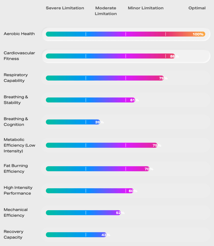 With the data we gain from your breath during exercise, we can accurately discover your individual training zones. This means that your coach (or us if you choose to train with us), can create an efficient training program suited to you and your goals. We can specifically target your limitations, and give you different training options, based on the equipment you have available to train with.